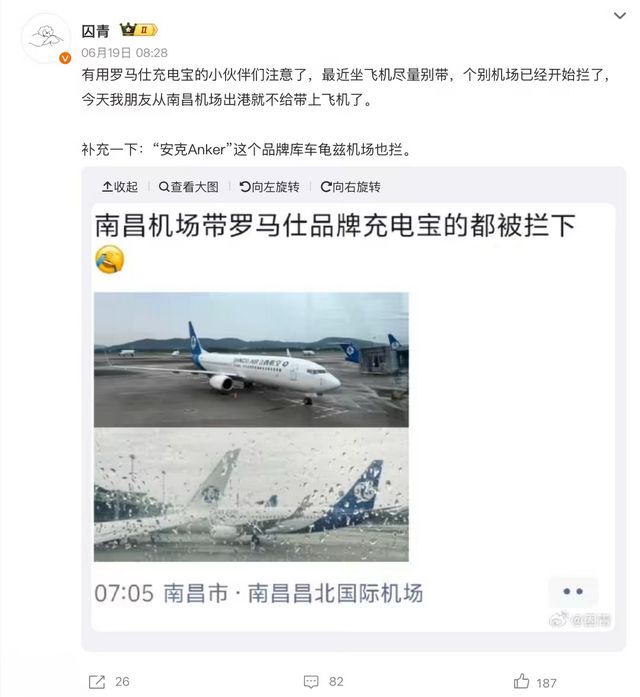 多家机场严查罗马仕/安克品牌移动电源充电宝
