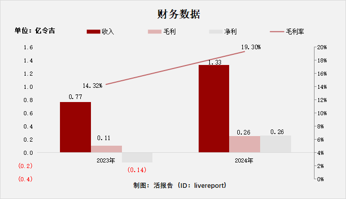 毛利分别约为令吉0.11亿、0.26亿,2024年同比增长率为133.52%;