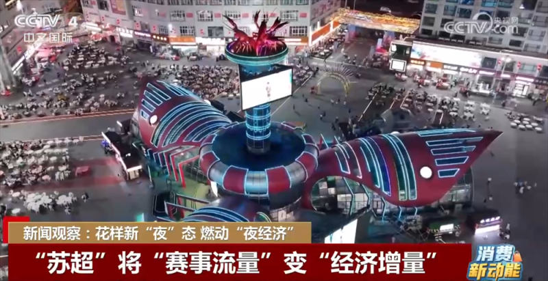 体育消费逐渐成为夜经济的新亮点,“苏超”各举办城市推出“跟着苏超去购物、品美食、去体验”系列活动,持续将赛事“流量” 转化为经济 “增量”。