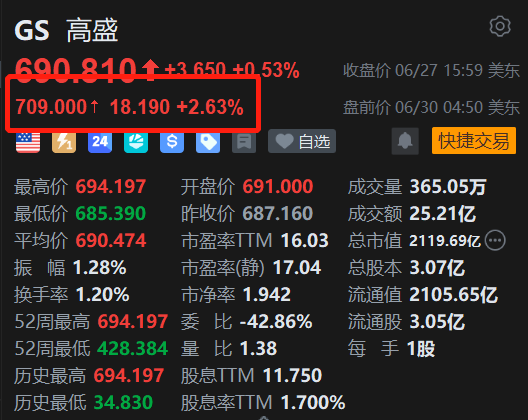 美股异动丨高盛盘前涨2.6% 股价开盘势创新高