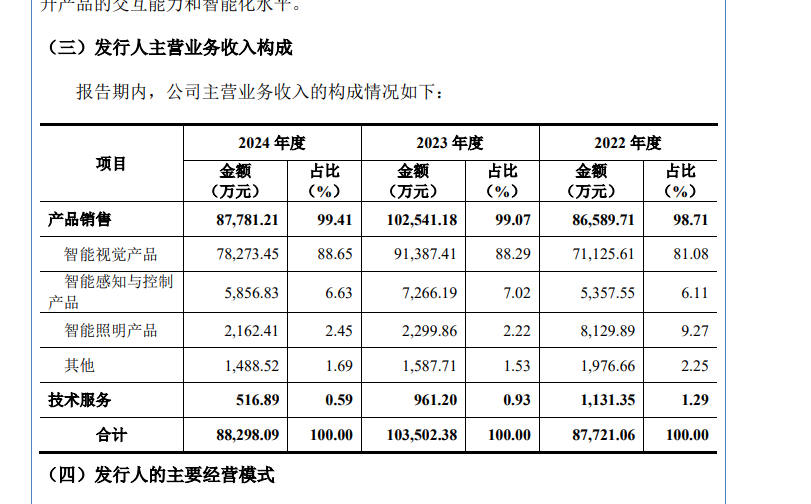 华来科技产品集中度较高。报告期各期,公司智能视觉产品销售收入分别为71,125.61万元、91,387.41万元和78,273.45万元,占当期营业收入的比例分别为80.61%、87.70%和88.28%。
