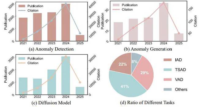 图 2 异常检测、生成和扩散模型的研究热度分析二、扩散模型与异常检测