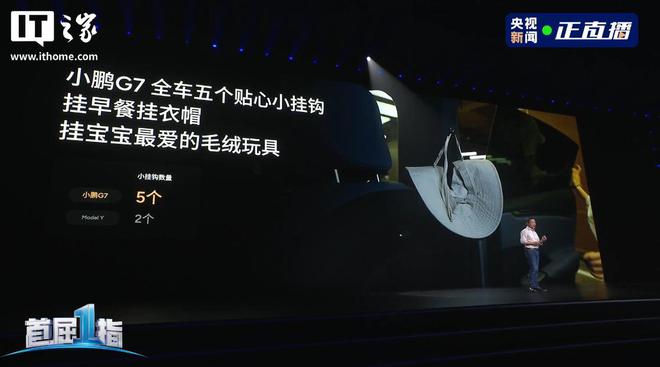 此外,小鹏 G7 全车配有 5 个小挂钩,可以挂早餐、衣帽、毛绒玩具等。
