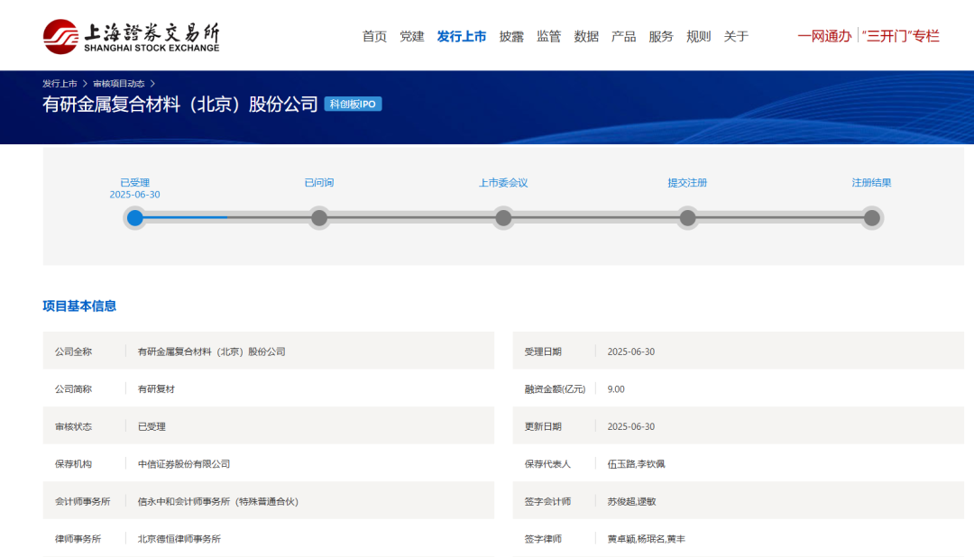 沪深交易所IPO申报企业(主板/创业板/科创板)9家