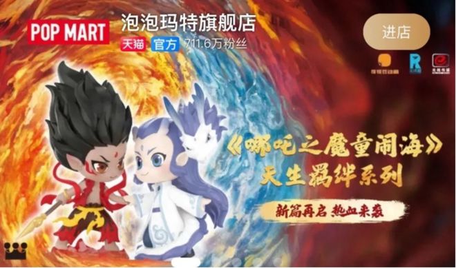 年初《哪咤2》爆火,不少与电影联名的品牌都吃到了流量红利。尤其是泡泡玛特,主打“藕饼CP”的“天生羁绊系列”盲盒成为现象级爆款,连带着公司在股市的表现都一路上涨。
