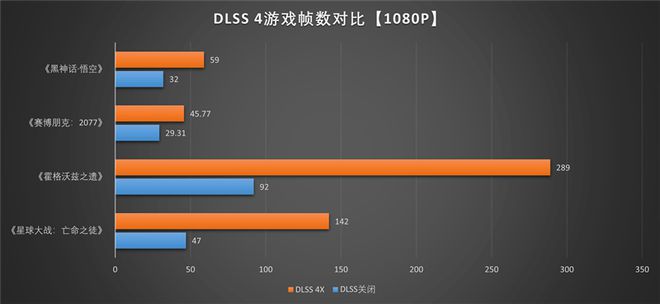 在《黑神话·悟空》和《赛博朋克:2077》中,高画质对显卡负担极大,DLSS 4开启后帧数提升比例不到2倍,但在《霍格沃兹之遗》和《星球大战:亡命之徒》中,帧数轻松提高三倍,玩家可以根据实际游戏,适当调高分辨率或调低特效水平,充分发挥DLSS 4技术的帧数提升能力。