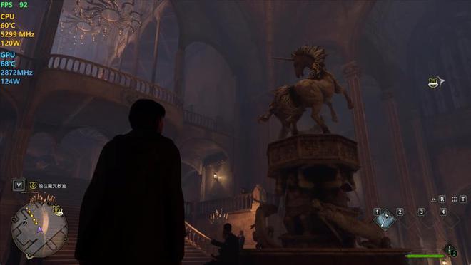 在《霍格沃兹之遗》中,使用超高画质预设,DLSS超分辨率设置为平衡,记录游戏帧数。