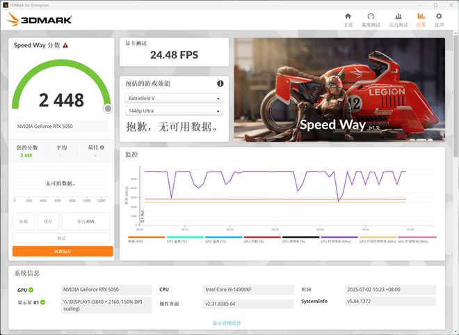 在3DMark测试综合性能的Speed Way测试中,总成绩为2448,其中显卡测试成绩为24.48FPS。