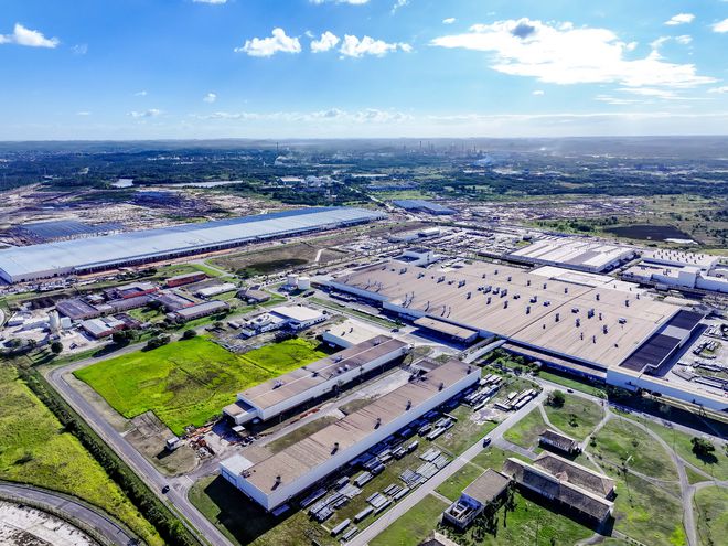 2023年7月,比亚迪收购位于巴伊亚州卡马萨里的汽车工业园区;2024年3月,比亚迪卡马萨里工厂正式开始建设。该工厂运营使用太阳能与水力电力,搭载雨水回收系统与污水处理设施,遵循全球减碳标准。