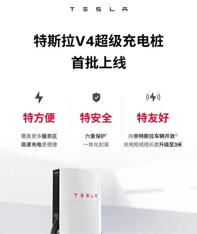 特斯拉宣布首批V4超级充电桩正式投入使用,覆盖上海、甘肃、浙江、重庆等地服务区。据特斯拉官方介绍,该批充电桩具有防雨防水等六重保护,且同步向非特斯拉车辆开放。