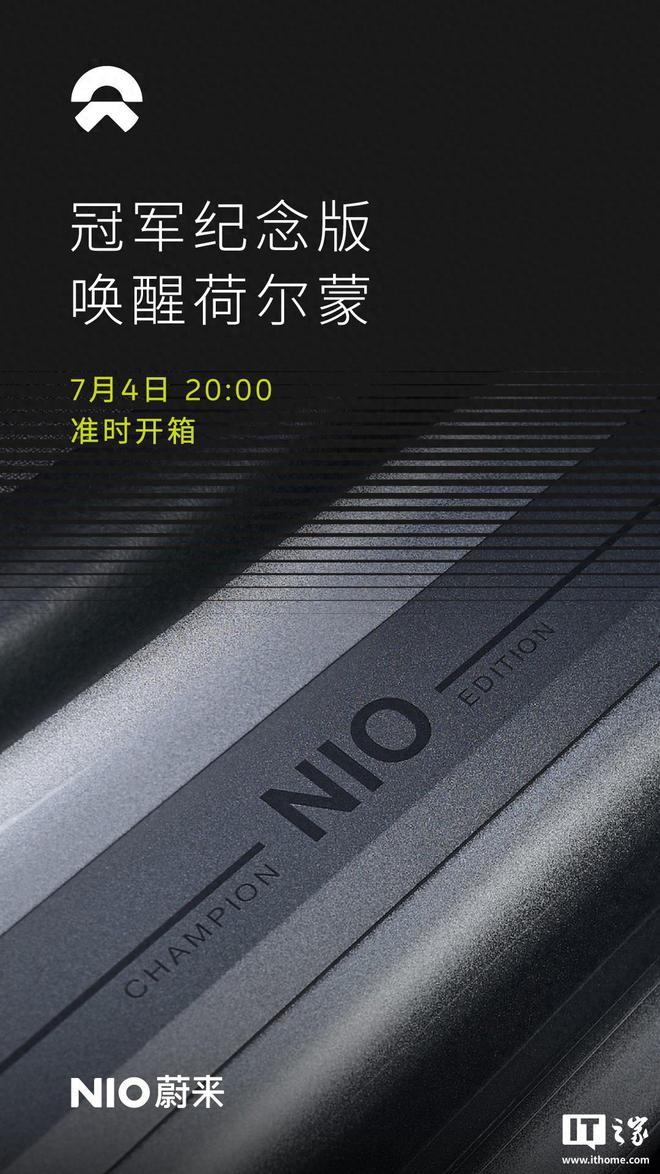IT之家 7 月 3 日消息,蔚来宣布旗下冠军纪念版车型将于 7 月 4 日(明日)晚上 8 点正式发布,主要涉及 EC6、ET5、ET5T。作为比较,新款蔚来 EC6、ET5、ET5T 于今年 5 月上市,整车购买起售价分别为 35.8 万元、29.8 万元和 29.8 万元。
