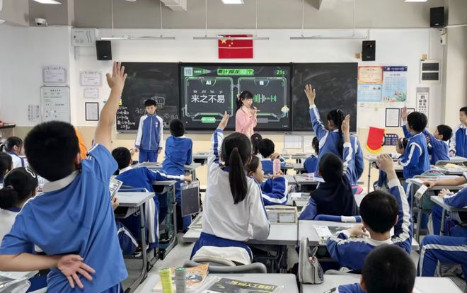 在江苏昆山柏庐实验小学,校长陈娟介绍,“智能双师”模式下,线上大屏的老师设计课程任务,线下课堂老师把控节奏,组织学生互动讨论。有15年教龄的科学教师金鑫表示,老师们通过双师课堂“多听几节课,多上几节课,就会上课了”,AI技术还能辅助解决许多跨学科内容。
