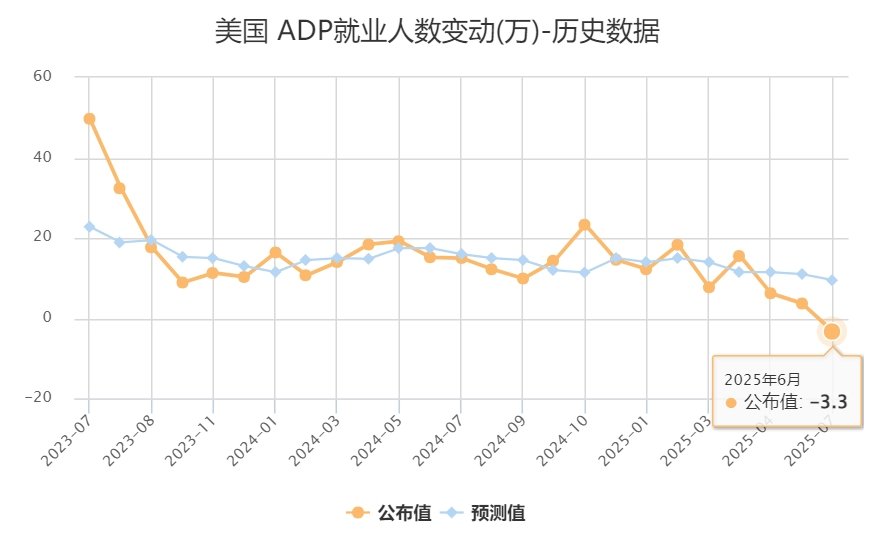 “小非农”人数录得负值,为2023年3月以来最大降幅