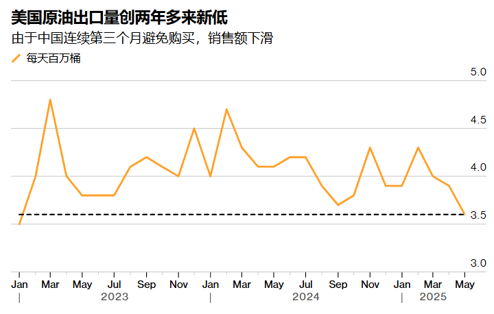 美国的原油出口量折线图 彭博社