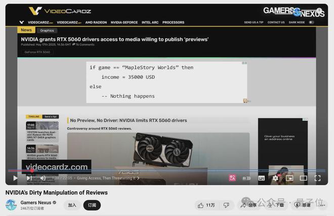 除了对产品和销售的不满之外,博主还表示,在消费级显卡中的垄断地位,也让英伟达开始威胁媒体和评测机构并操控舆论。