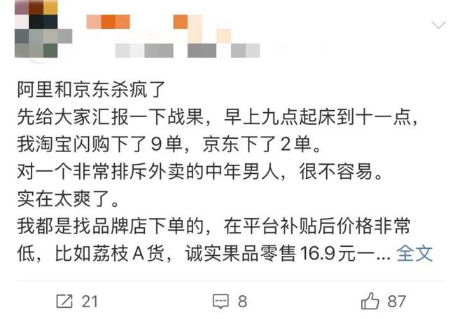 0元的蜜雪冰城、1分钱的奶茶、1.5元的水果捞……从昨天开始,淘宝闪购、美团放出了大量大额的外卖红包券,引发了全国人民集体“薅羊毛”。有网友说:这两天像是被这两家做局了。还有网友一早下了11个订单。也有网友说:喝不完,根本喝不完……