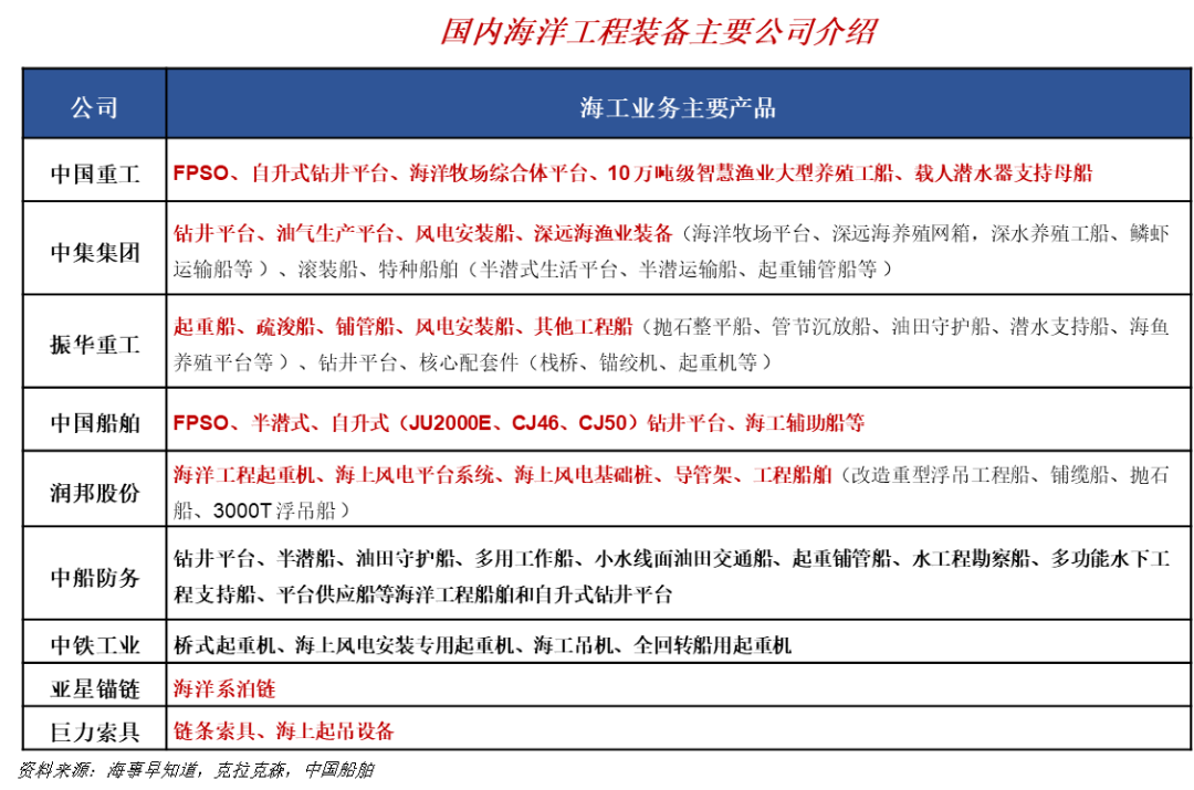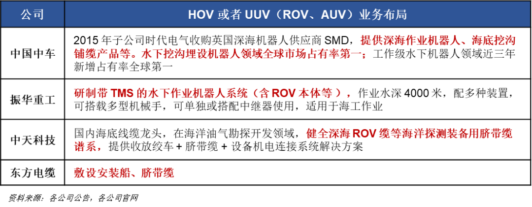 国内上市公司里,不少都在海底作业装备领域发力。具体如下表: