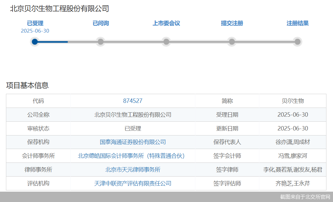 北交所官网显示,近期获受理的企业中,贝尔生物、美康股份、百英生物三家生物医药相关企业均曾有创业板IPO经历。