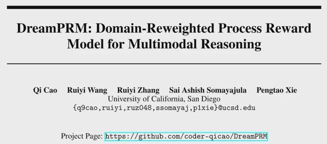 DreamPRM 由加州大学圣地亚哥分校的研究团队开发,在数学推理权威测评榜MathVista上获得了第一名。第一作者为博士生 Qi Cao,通讯作者为该校副教授 Pengtao Xie,团队其他成员还包括王睿一,Ruiyi Zhang 和 Sai Ashish Somayajula。