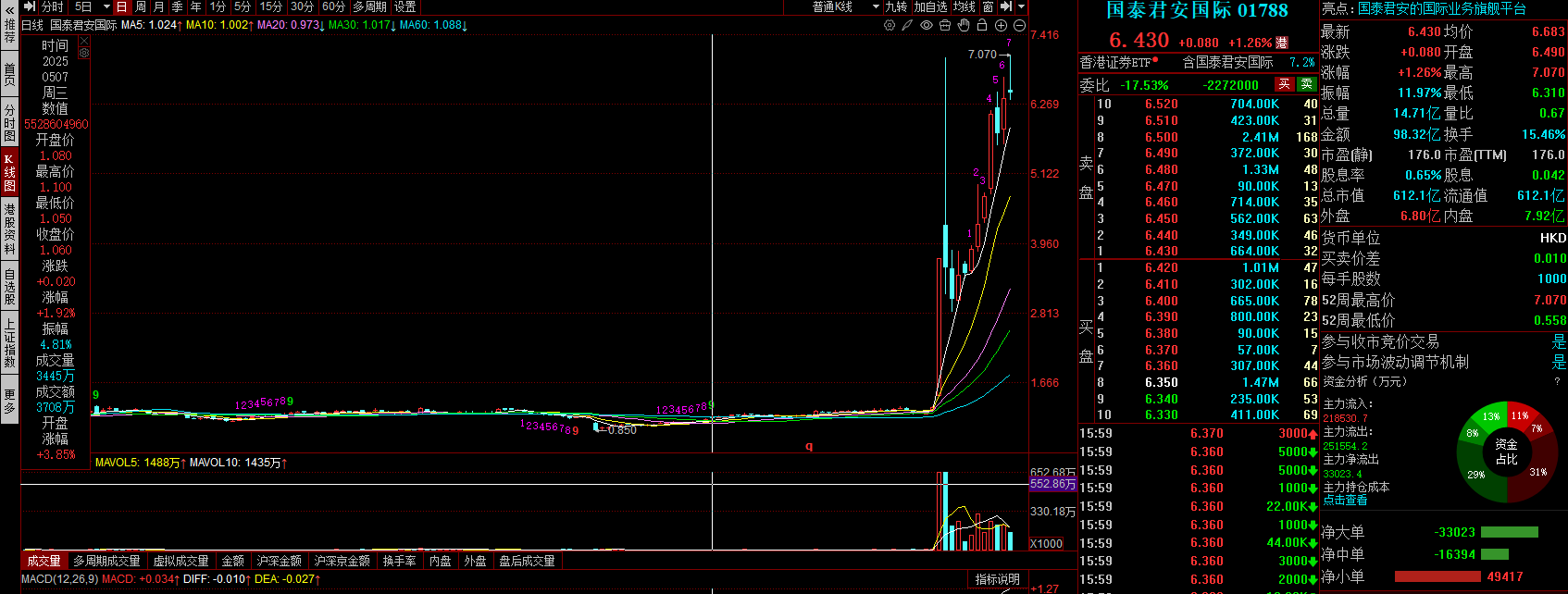 除了亮眼的业绩预告,真正让这家券商为市场所瞩目的是稳定币牌照。6月24日,国泰君安国际正式获香港证监会批准,成为首家可提供全方位虚拟资产相关交易服务的香港中资券商。此消息点燃了投资者押注该公司的热情。同花顺数据显示,6月25日~7月11日这13个交易日,国泰君安国际股价已经涨超400%。