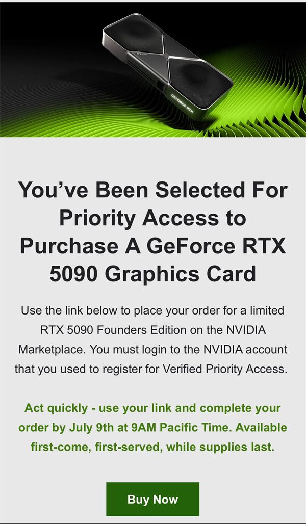 RTX 5090原价购买成真!NVIDIA发放新一轮优先资格