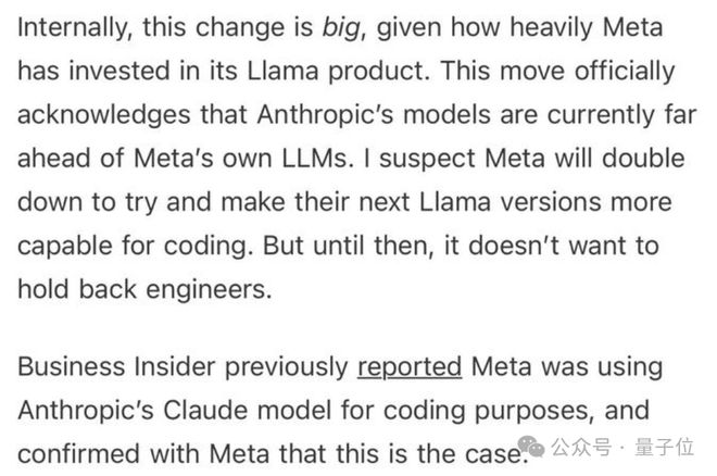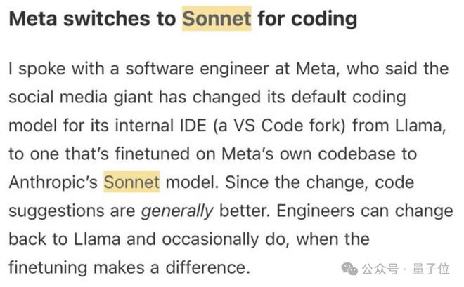 Meta工程师透露,现在Meta内部开发都已经换掉了自家的Llama,改用Claude Sonnet写代码。