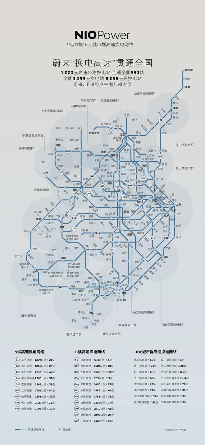 截至今日,蔚来累计在全国布局3399座换电站2883座超充站,其中高速公路换电站占比近30%,成为支撑电动车跨城出行的核心枢纽。用户实测显示,高速换电平均耗时仅5分钟,效率远超传统充电模式。