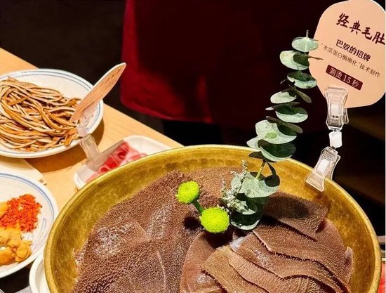例如采用地下350米井水滋养,全程水培不添加任何化学药剂的黄豆芽、毛肚用的是南纬40度新西兰天然牧场的海福特牛肚、茭白、竹笋等新鲜时蔬都是从云南空运而来。