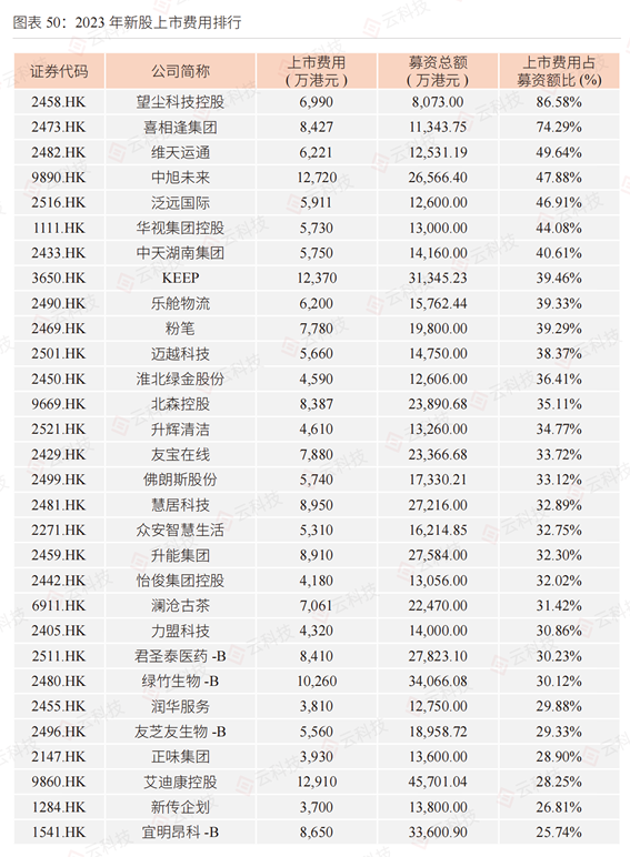 附录:2023-2024年上市费用占比TOP