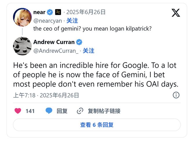 “现在大家提到Gemini,第一个想到的就是他,估计都没人记得他在OpenAI的日子了。”