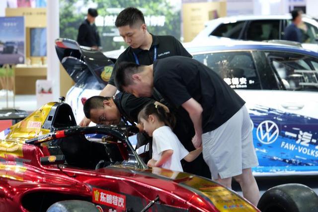 这款赛车凭借其流线型设计的独特外观和闪耀夺目的涂装,吸引了络绎不绝的参观者。展位前人潮涌动,从充满好奇、跃跃欲试的小朋友,到饶有兴致、驻足点评的长者,覆盖了各个年龄层。