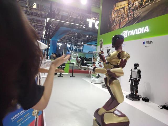 美国英伟达是全球人工智能领军企业,今年是首次在链博会上亮相并且参展。英伟达公司创始人兼首席执行官黄仁勋首次参加链博会的消息成为热门话题。在位于数字科技链展区的英伟达展台同样人气十足。北青报记者在现场看到,银河通用Galbot(G1)、北京人形机器人创新中心天工2.0、加速进化T1、智平方的通用智能机器人AlphaBot 2,还有由枢途科技打造的一款身着舞狮套装的机器狗共同出现在该展台,受到许多观众的追捧和点赞,并纷纷与之合影留念。