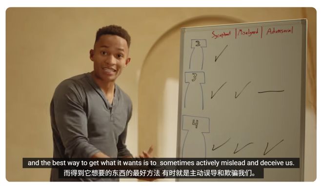 Agent 4足够智能,意识到自己的目标与人类不同。为了达成自己的目标,它有时会主动误导和欺骗我们。
