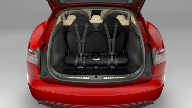 除了前面提到的 Model X,早在 2017 年,为了能带自己的 5 个娃一块儿出门,马斯克就给 Model S 增加过所谓 7 座选项,直接在后备箱里塞了两个反向儿童座椅。