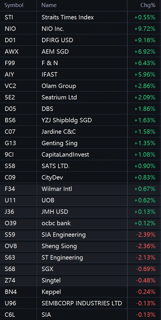 The Straits Times Index (STI), a key benchmark for the Singapore Exchange, ranged between 4,203.88 and 4,231.28 throughout the day. It ended the session at 4,231.28, up 23.02 points or 0.55% compared to Tuesday's close.