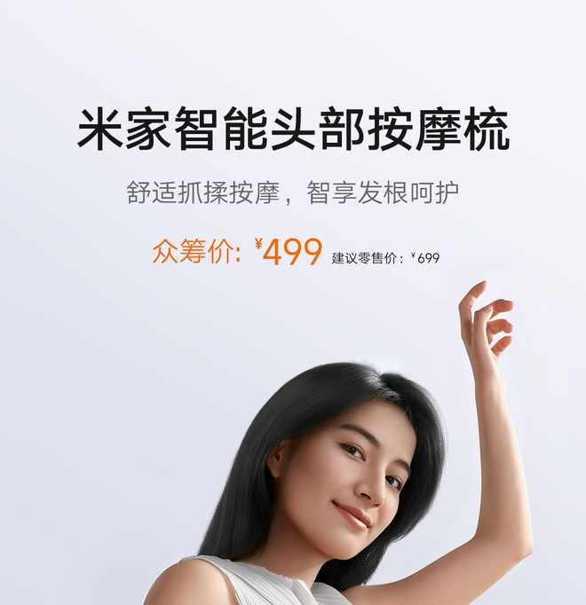小米推出众筹 499 元米家智能头部按摩梳:仿人手抓揉按摩