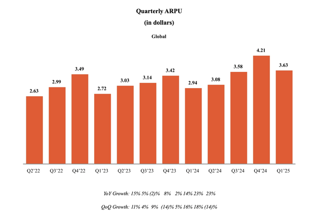 财报电话会议于5月1日举行,因此当时尚无更多数据。无论如何,该股目前的价格并未反映用户环比增长有限(甚至环比第一季度有所下降)的预期。