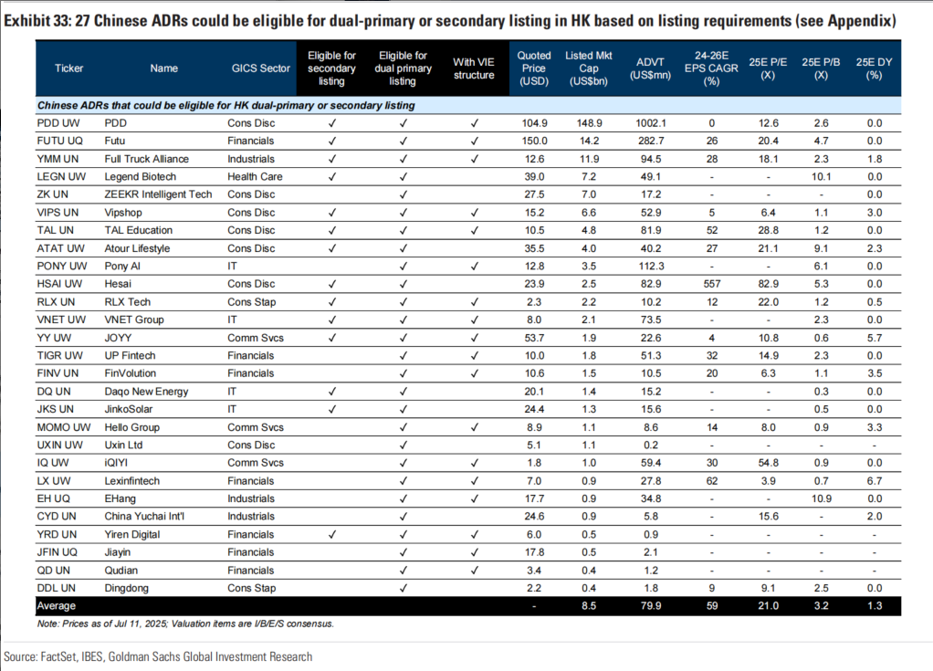 关注标的:20家计划赴港上市的优质A股(2024-2026 年 EPS 增速超 10%、PEG<2 倍、外资持股超 2%)和27家潜在双重上市的 ADR(若中美摩擦升级可能加速回归)。