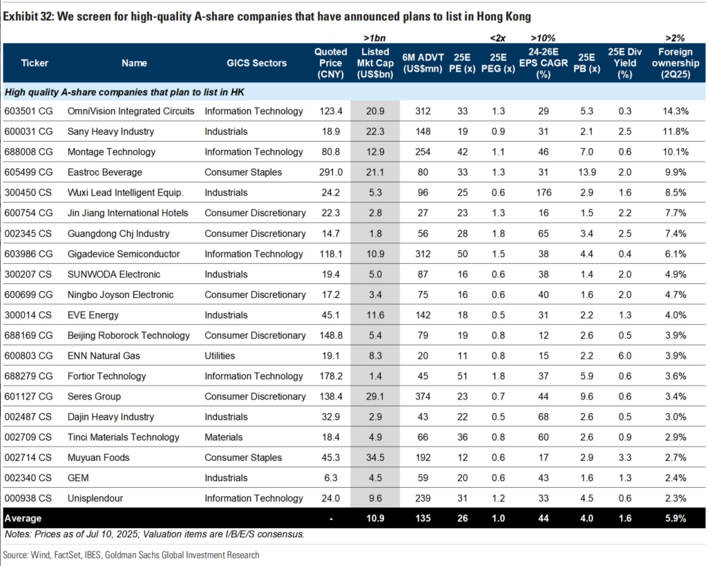 计划赴港的优质A股名单