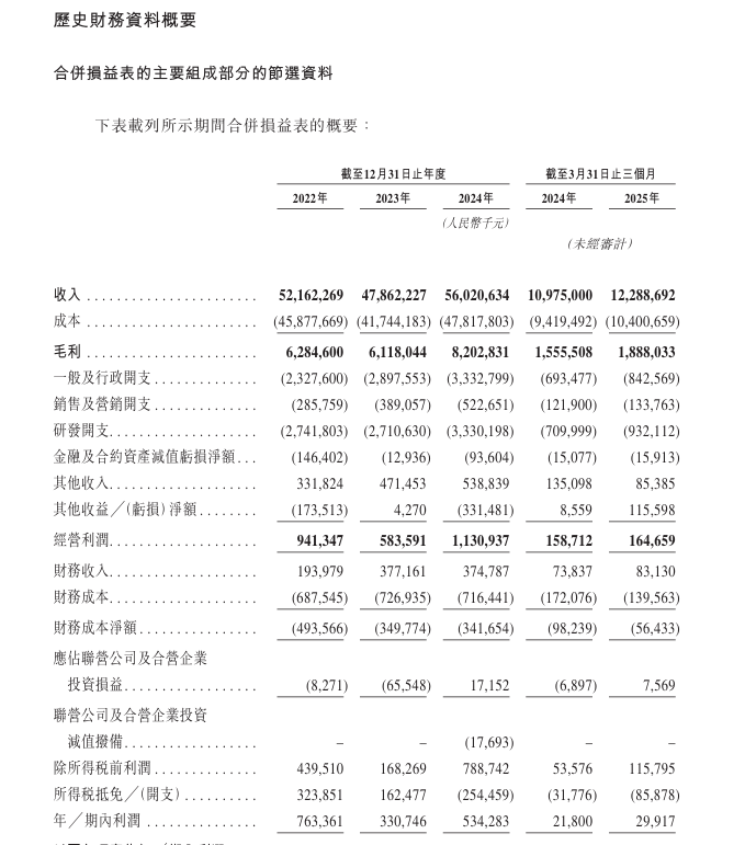 财务方面,于2022年度、2023年度、2024年度以及2025年截至3月31日止三个月,欣旺达实现收入分别约为521.62亿元、478.62亿元、560.21亿元以及122.89亿元;同期,年/期内利润分别约为7.63亿元、3.31亿元、5.34亿元以及2.99亿元。