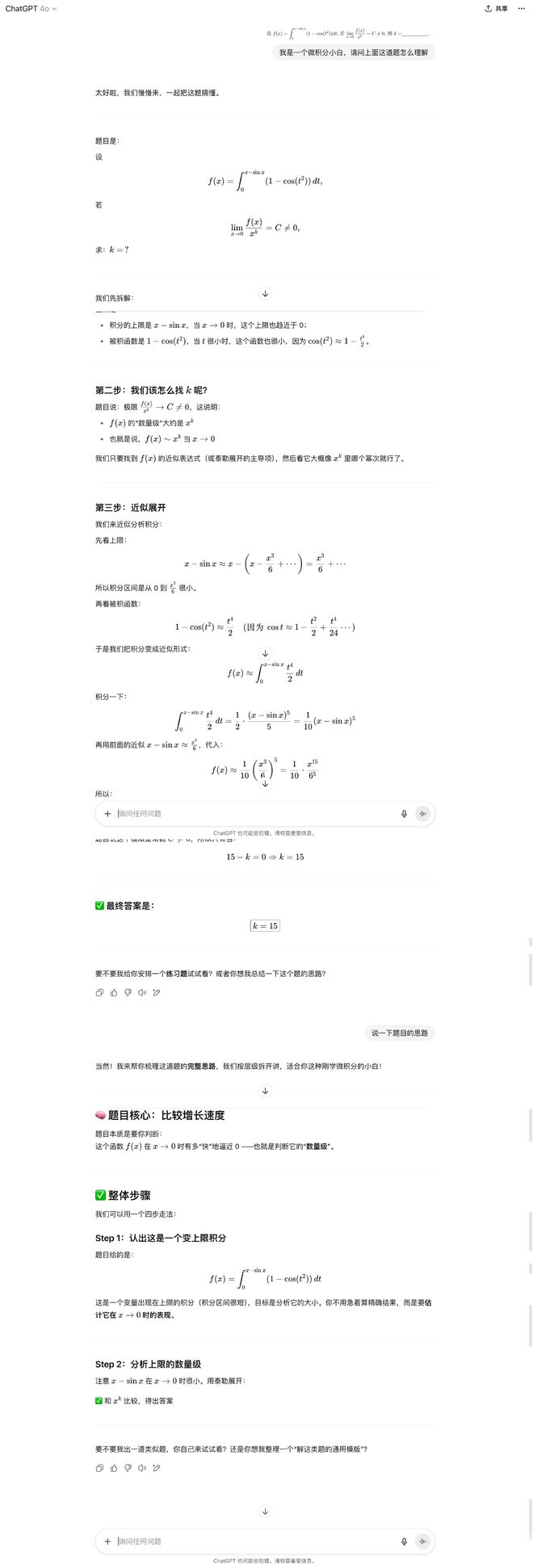 再比如我上传了一道微积分题,它带我逐步拆解求解思路,语气也比较温和。开头的一句“我们慢慢来,一起把这题搞懂,”提供了极大的情绪价值。