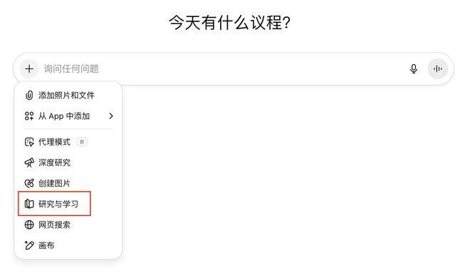 OpenAI 表示这项功能主要面向大学生群体,尤其适用于作业辅导、考试准备和学习新知识。使用方式非常简单,在 ChatGPT 的工具中选择“研究与学习”,然后直接输入你的问题即可。