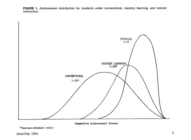 美国教育学家 Benjamin Bloom 曾经在 1984 年做过一个研究——2 Sigma 问题,研究发现接受 1 对 1 辅导的学生,水平要比未接受 1 对 1 辅导的学生高两个标准差,指出个性化教育能大幅提升教学效果。