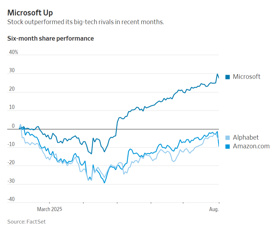 In the longer term, there is little question that cloud computing is going to grow in ways that play to Microsoft’s strengths. Its rivals—mainly Amazon.com and Google—are growing quickly too, but don’t have all of Microsoft’s broad corporate software offerings that enhance its cloud footprint, even outside AI. Amazon on Thursday said its cloud unit grew 17.5% in the June quarter, disappointing investors and forcing Chief Executive Andy Jassy to answer to Azure’s outperformance. Recent quarterly swings in Azure’s favor were “really just moments in time,” he said. The company’s stock fell around 8% on Friday.
