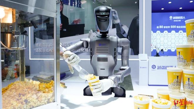 红星资本局在现场看到,在“接打爆米花”这个高动态任务中,DOBOT AtomⅡ除了能够在狭窄的操作台之间灵活转身,平稳精准地将爆米花倒入盒中递给观众,还能快速回应观众挥手、比心、鼓掌等互动需求。