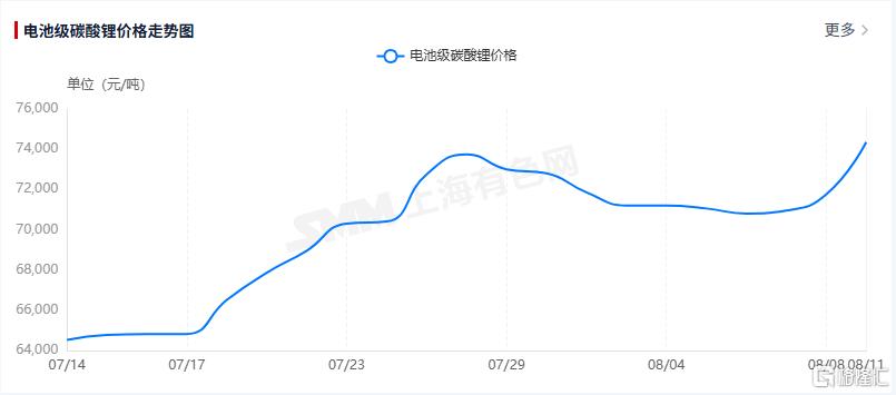 受此消息影响,8月11日早盘,碳酸锂期货市场一片沸腾,主力合约涨幅高达8%,价格飙升至81000元/吨。