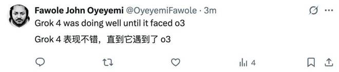 评论区很有意思,“Grok 4 很强,直到它遇上了 o3。”