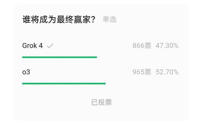 就在昨天,Grok 4 携手 OpenAI o3 进入了决赛。在机器之心的投票中,大家更倾向于 o3 战胜 Grok 4。