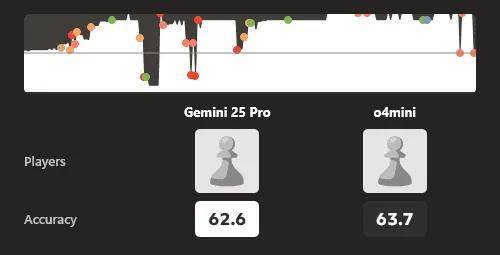另外,在季军争夺战中,Gemini 2.5 Pro 以 3.5-0.5(三胜一和)强势击败了 o4-mini