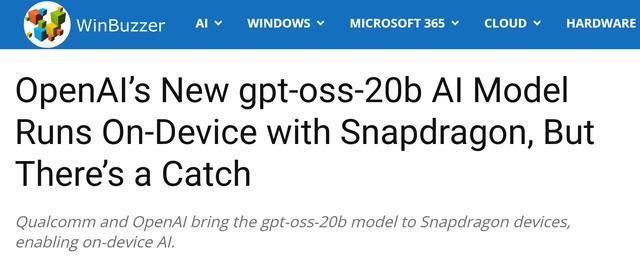 【环球网科技综合报道】8月12日消息,OpenAI近日推出其最小开源模型gpt-oss-20b,该模型在常见基准测试中表现与OpenAI o3mini模型相近。今日,高通公司宣布,这是OpenAI首个可在搭载骁龙平台的终端侧运行的开源推理模型。